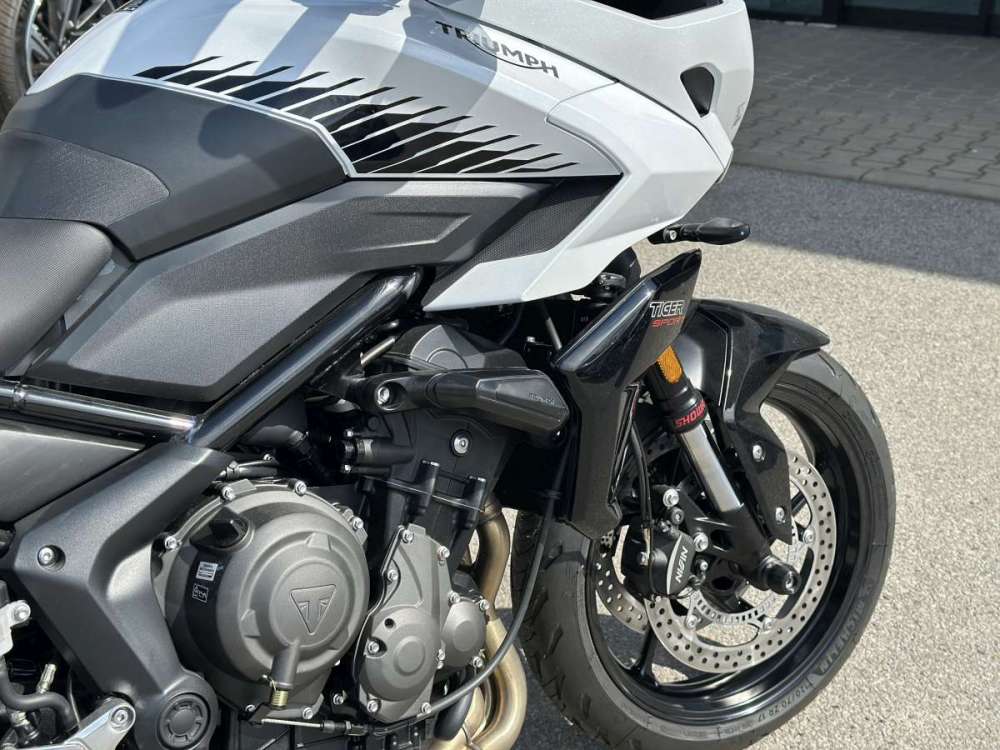 Navržen jako velmi vyvážený a dostupný motocykl, ideální pro každodenní ježdení i víkendový únik mimo město. Jasná první volba pro toho, kdo hledá zcela všestraný, zábavný a pohodlný motockykl se všemi výhodami, jaké nabízí jeho výkonný a pružný tříválcocý motor, a nejnižším náklady na jeho provoz. Tiger Sport 660 zaručuje skutečný sportovní zážitek z jízdy se silou v nízkých otáčkách a zároveň neklesajícím výkonem ve vysokých otáčkách, jaký poznáte jedině na motocyklech Triumph. Díky podvozku Showa a brzdám Nissin výborně ovladatelný a lehký motocykl, na kterém se budete cítit zcela sebejistě již po prvním svezení.