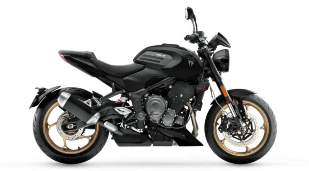 Kombinace rebelantské energie a vytříbené DNA roadsterů Triumph se odráží v tvarování nádrže a minimalistické zádi, které vytvářejí štíhlou, moderní siluetu. Prémiové zpracování, od broušeného hliníku přes výrazné barevné kombinace až po kontrastní zlatá kola, podtrhuje jeho dynamickou duši. Ať už stojí zaparkovaný u chodníku, nebo projíždí městem, Trident 800 nabízí neodolatelnou směs stylu, výkonu a preciznosti.